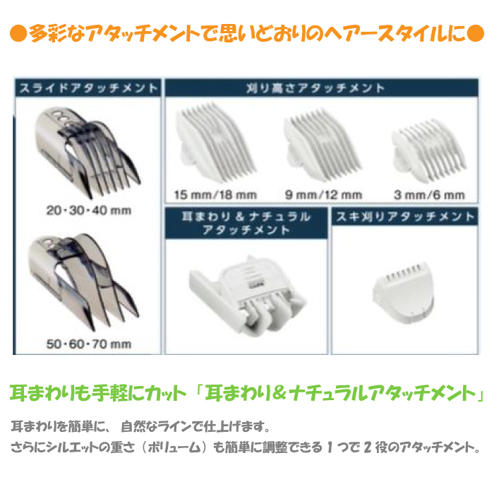 ●刈り高さアタッチメント付(3・6mm用、9・12mm用、15・18mm用)