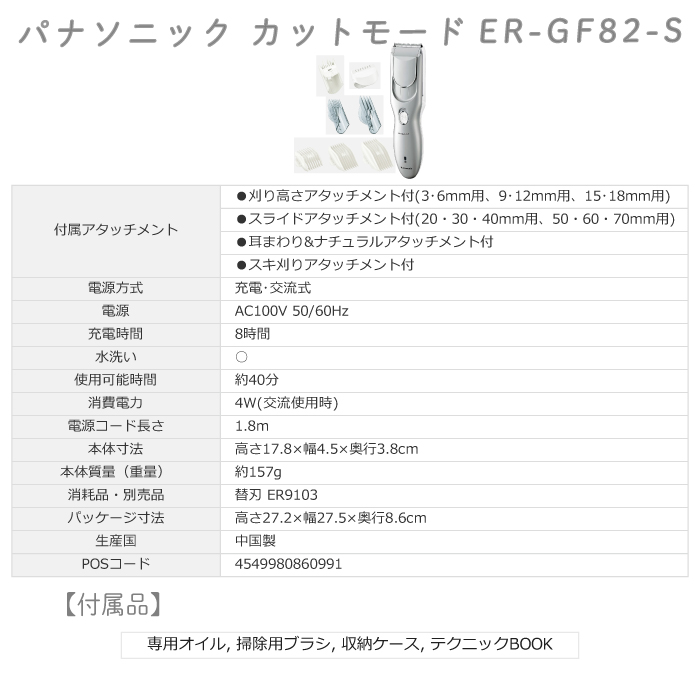 パナソニック Panasonic バリカン ER-GF82-S ファミリー ヘアーカッター