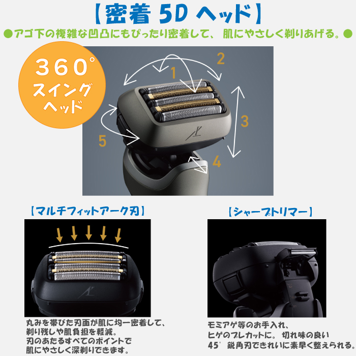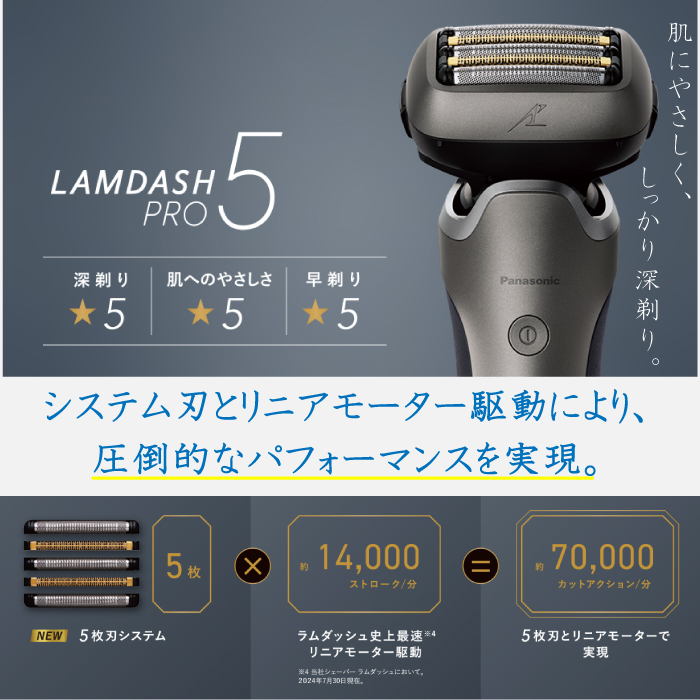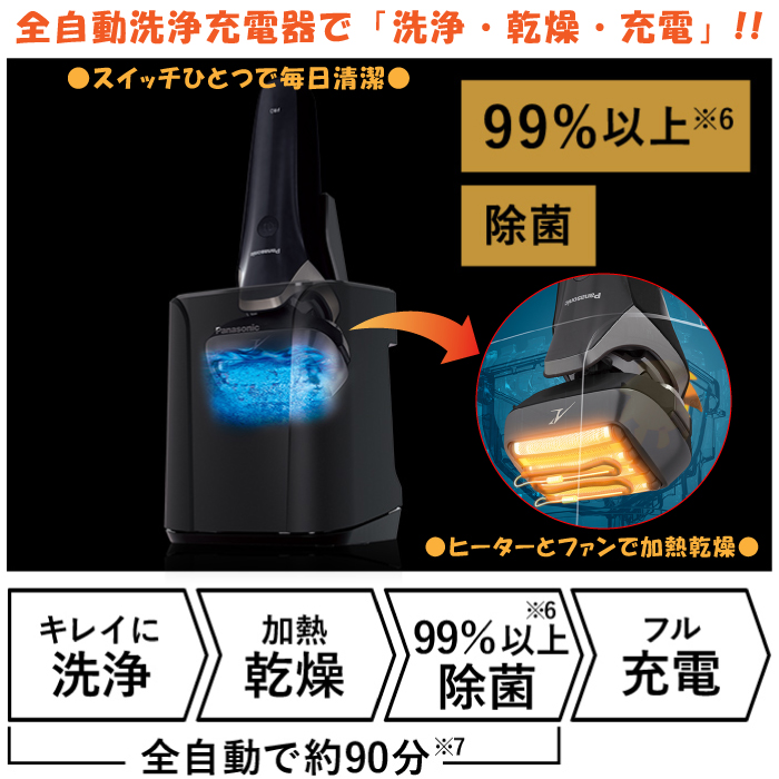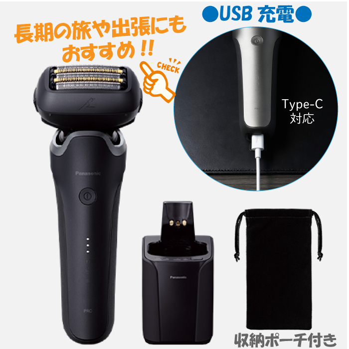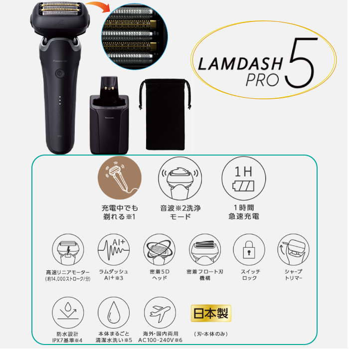 パナソニックPanasonic シェーバー ラムダッシュPRO 5枚刃 ブラック 黒 全自動洗浄充電器 充電しながら剃れる 防水