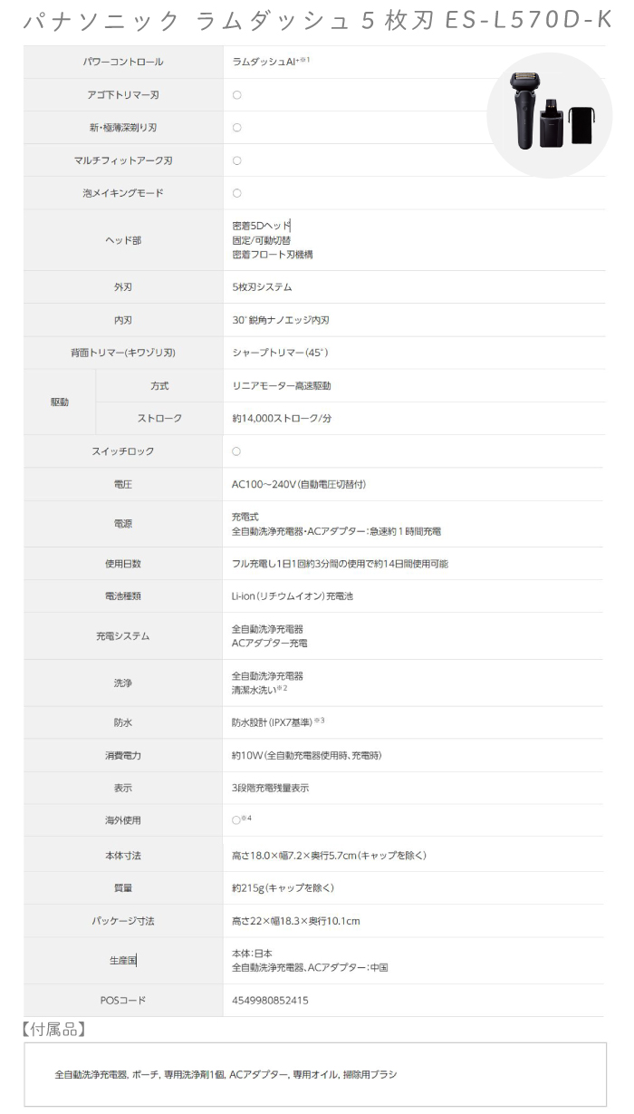 パナソニックPanasonic シェーバー ラムダッシュPRO 5枚刃 ES-L570D-K