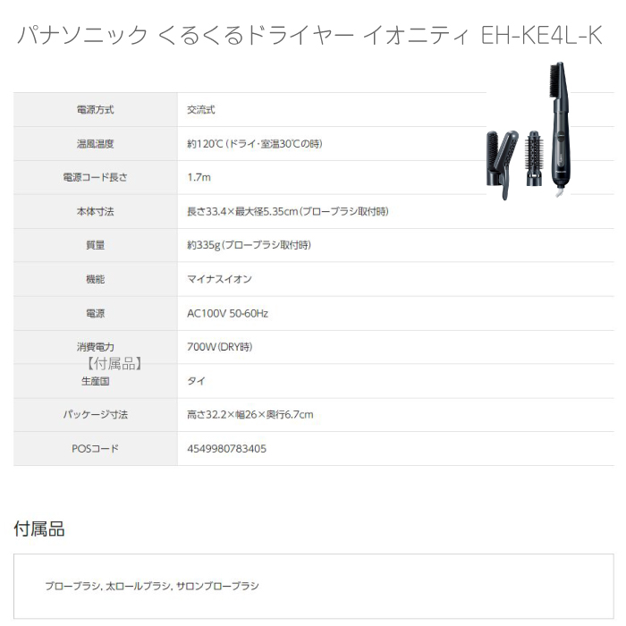 本体寸法:長さ33.4×最大径5.35cm(ブローブラシ取付時)