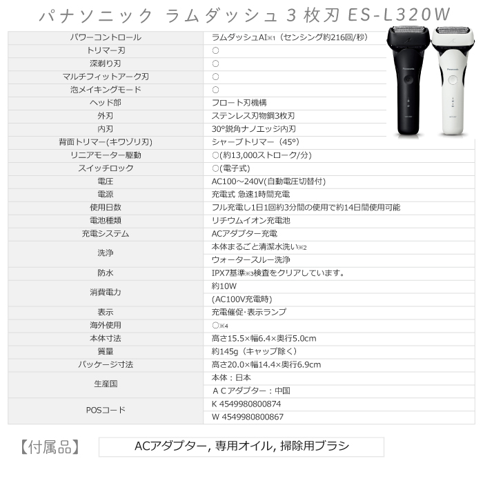 パナソニック Panasonic シェーバー ラムダッシュPRO 5枚刃 ES-L320W