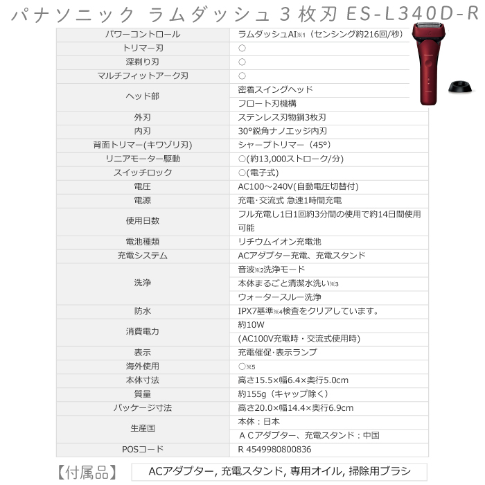 パナソニック Panasonic シェーバー ラムダッシュPRO 5枚刃 ES-L340D-R