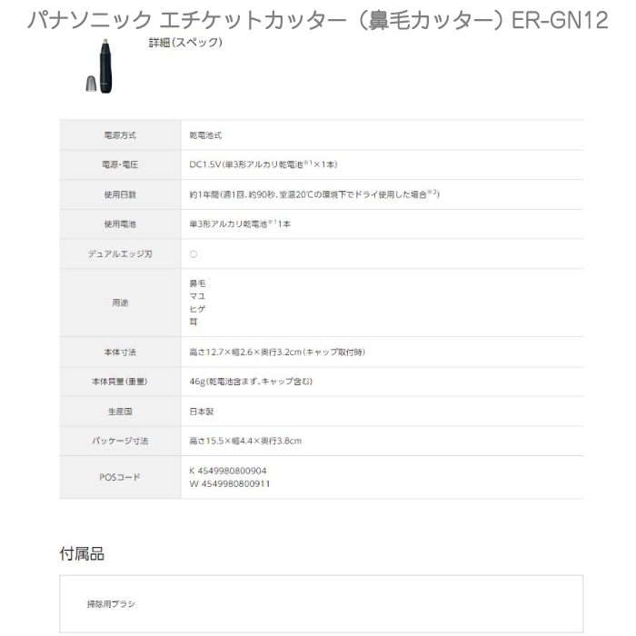 パナソニック Panasonic エチケットカッター(鼻毛カッター) ER-GN12