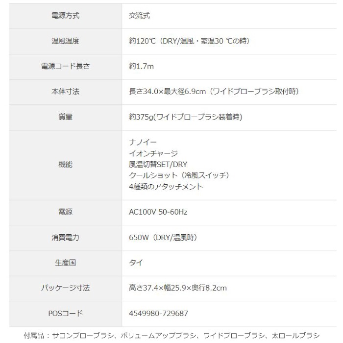 4つのアタッチメント、温風・冷風の使い分けで美容室並みの仕上がりに