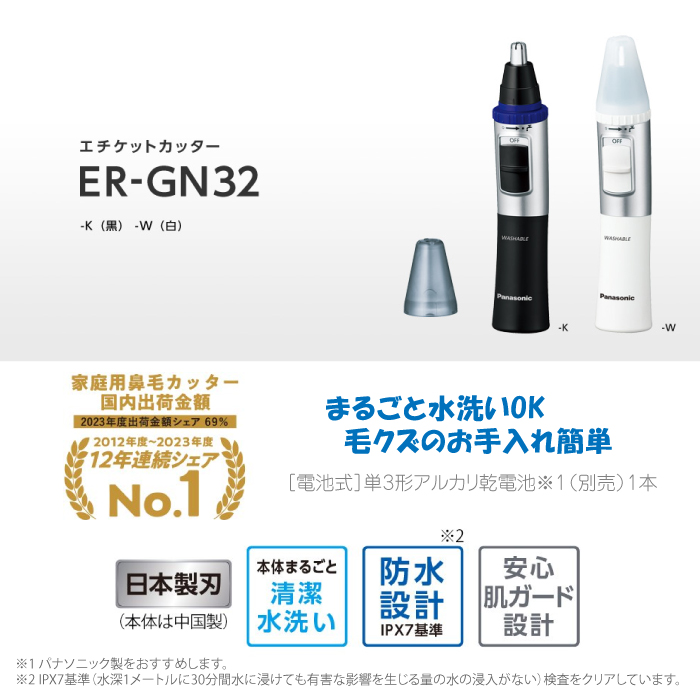 本体の毛クズの掃除が簡単な、水洗いモデルのエチケットカッター。