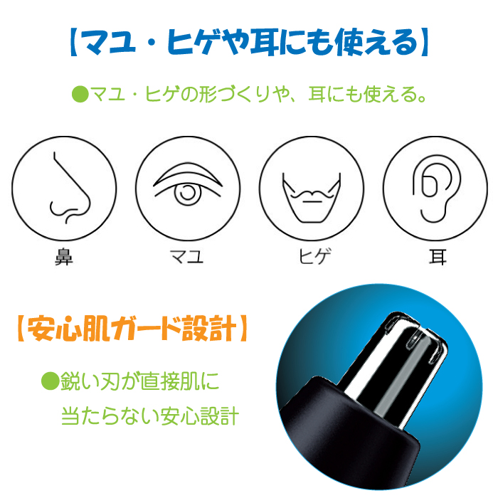 ブラック ホワイト 水洗いOK 毛剃り 鼻毛 耳 マユ 眉毛 ヒゲ 髭 髭剃り 電動毛剃り 毛処理 ムダ毛カット