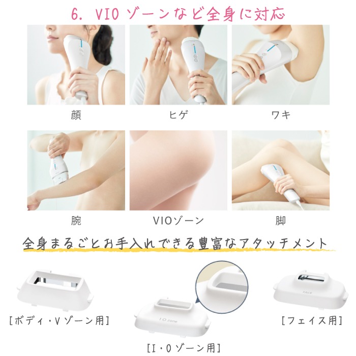 毛穴の目立ちにくさ、キメ感、ハリ感、明るさ、の4項目で美肌効果を実感。全身まるごとお手入れできる豊富なアタッチメント