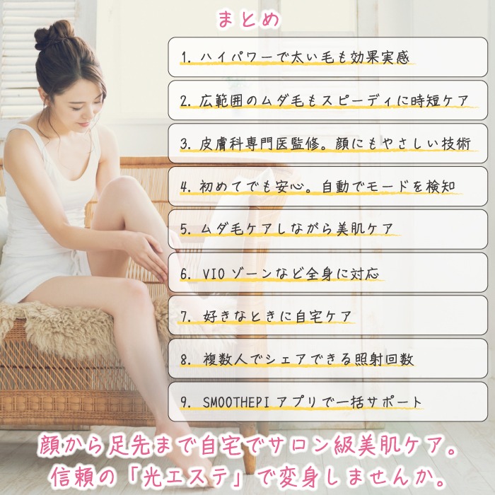肌刺激カットフィルター!スムースエピはハイパワーを維持しながら、「肌刺激カットフィルター」で刺激になりやすい波長を抑制。