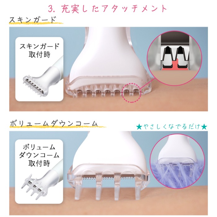 トリミングヘッドの進化により、肌あたりのやさしさUPとカット性能UPを両立。 VIOフェリエなら、剃った毛の断面が水平なので使用後に生えてくる毛がチクチクしにくい。安全カミソリで剃った毛は断面が鋭利なため、生えてきた毛がチクチクしやすい。 コンパクトで簡単!!使いやすいES-WV62でVIO処理の悩みを解消して、おしゃれも楽しみながらより快適な毎日をお過ごしください。