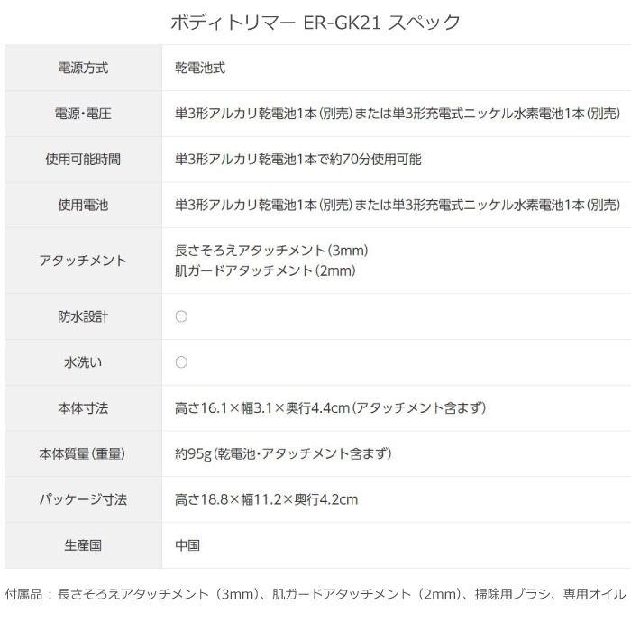 電池式・本体丸洗い・防水設計・海外/国内両用・日本製刃(本体は中国製)