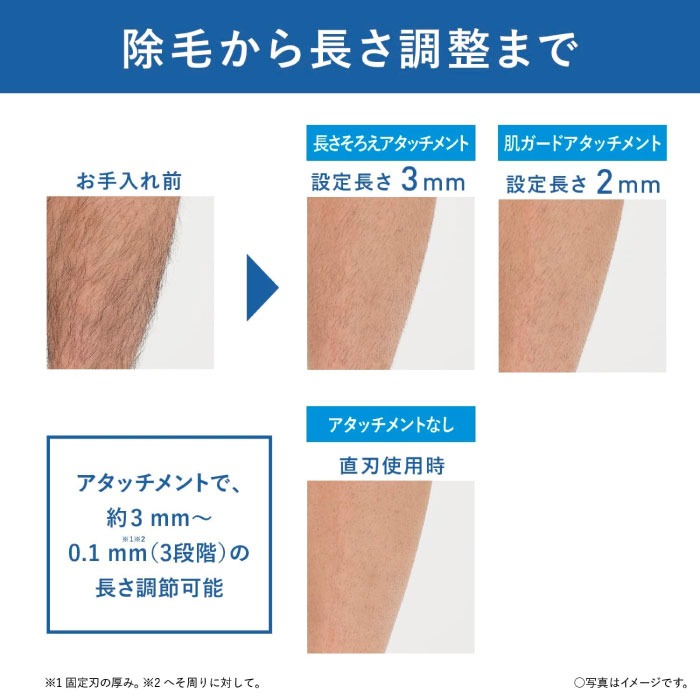長さ調節幅 : アタッチメント2、3mm、直刃約0.1mm