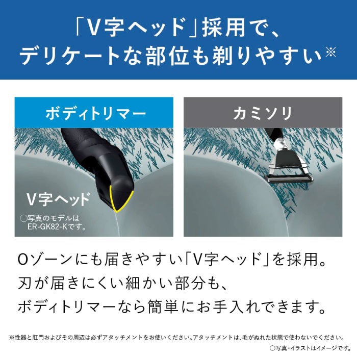 ■「V字ヘッド」採用で、デリケートな部位も剃りやすい