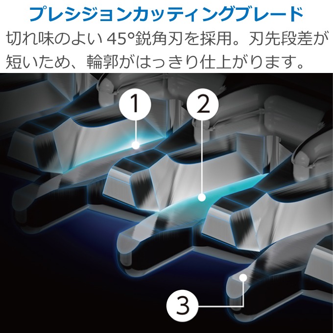 使いやすい形状を追求し細かい部分もカットしやすいコンパクト設計。