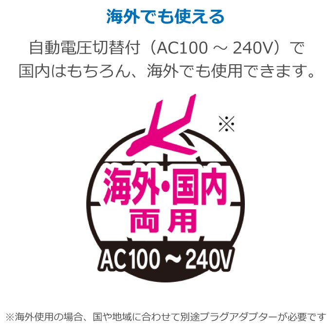 確認事項:※1 海外でご使用の場合には、国や地域に合わせて別途プラグアダプターをお買い求めください。