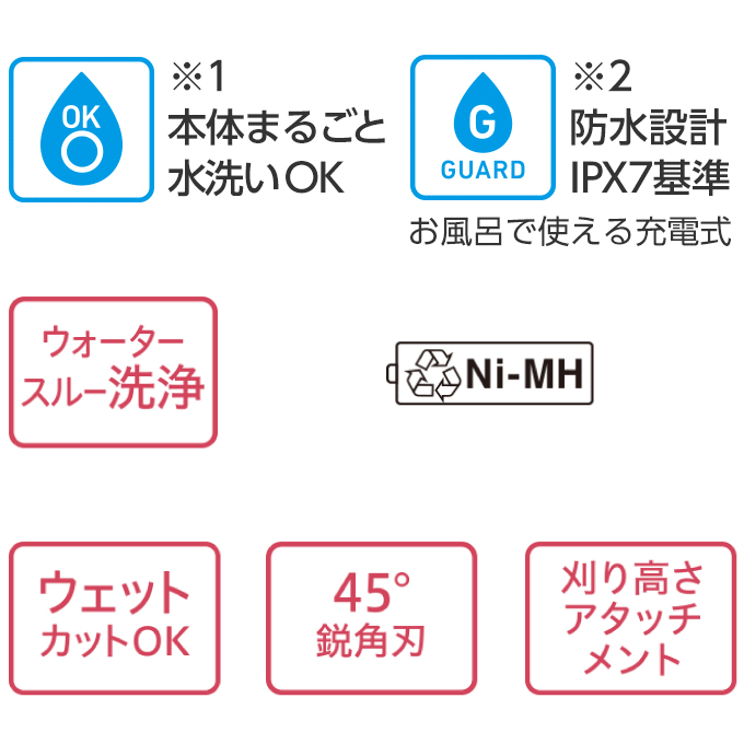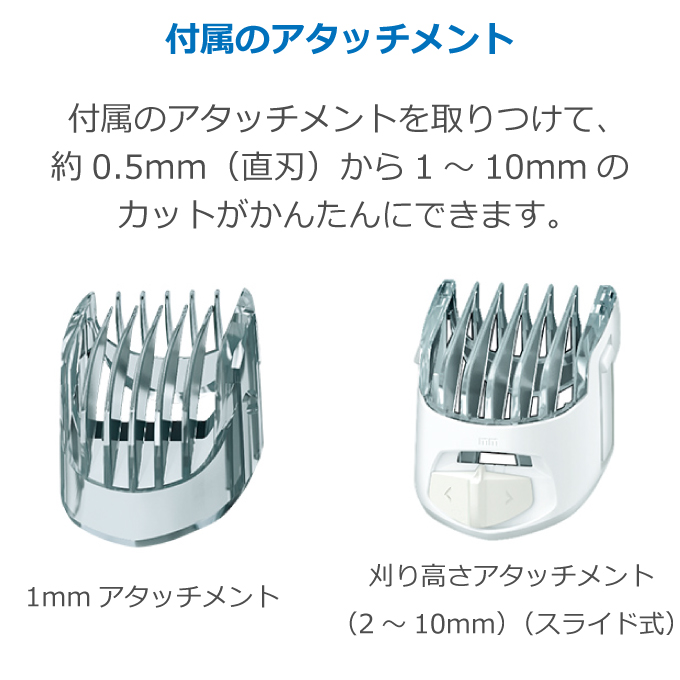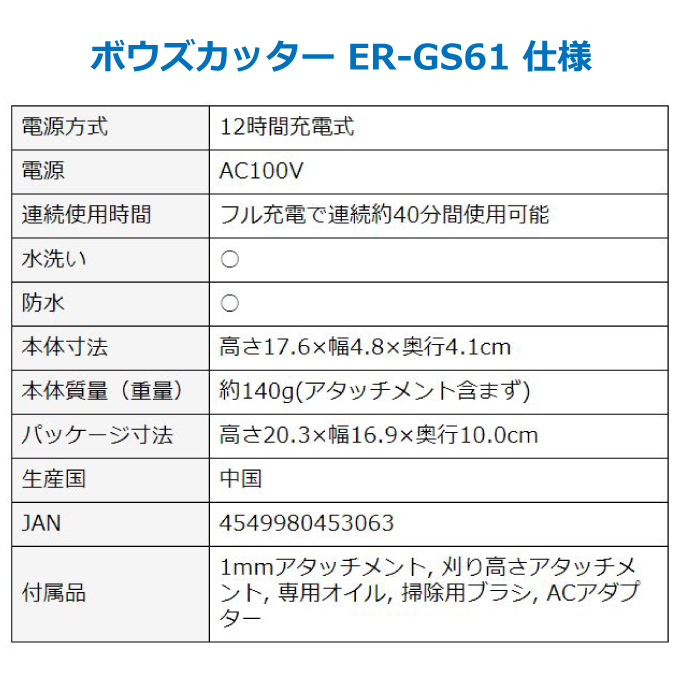 1mmアタッチメント, 刈り高さアタッチメント, 専用オイル, 掃除用ブラシ, ACアダプター