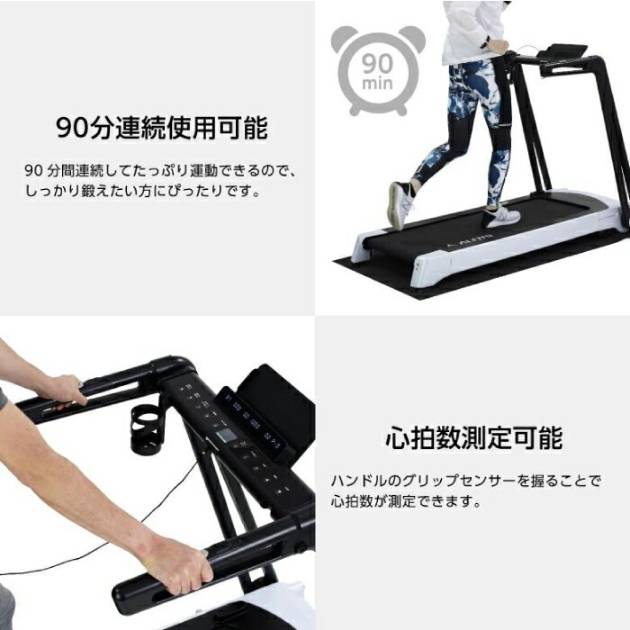 最高速度16km/hで、自宅で本格的なランニングトレーニングが可能。心拍数測定機能を搭載しており運動強度を最適化するのに役立ちます。また、耐荷重は100kgまで対応し、連続使用90分間も問題ありません。