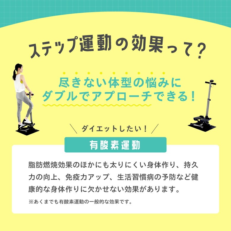 【有酸素運動】 太りにくい身体作りや持久力の向上、免疫力アップ、生活習慣病の予防など健康的な身体作りに。※あくまで有酸素運動の一般的な効果です。