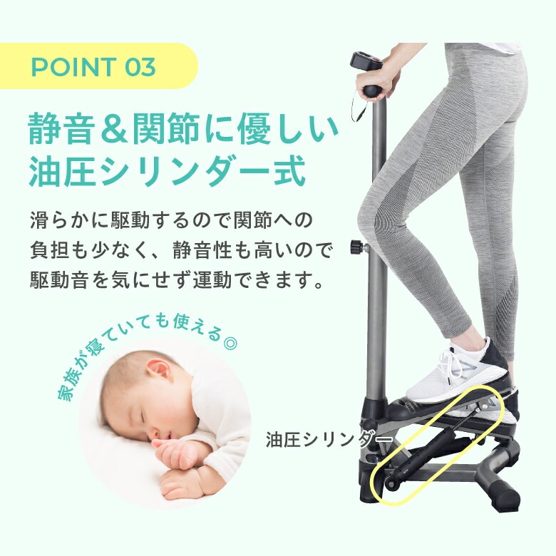 静音性が高くお部屋での運動も気にならない!滑らかな動きで関節への負担も少なく無理なく運動できる。