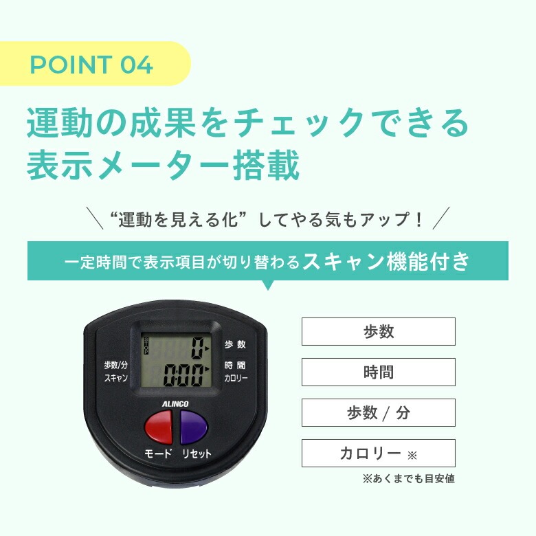 一定の時間で表示項目が切り替わるスキャン機能付き!運動の成果をチェックでき運動を見える化