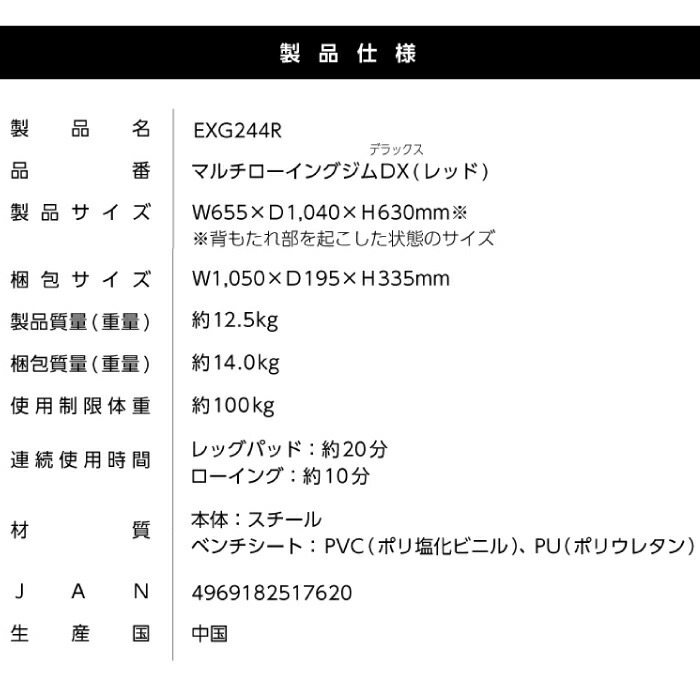 製品名 マルチローイングジムDX(レッド)