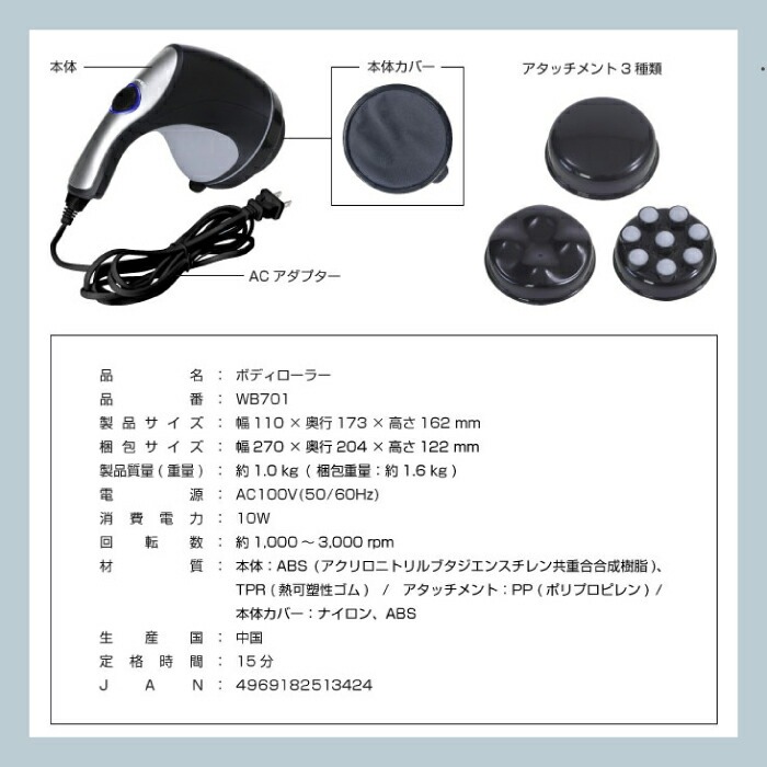 付属品:本体カバー、脱着式アタッチメント3種類