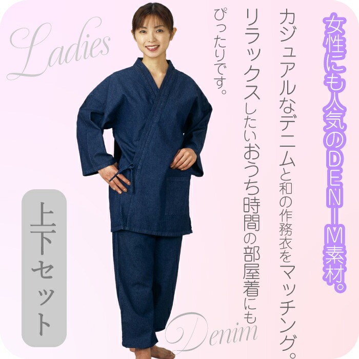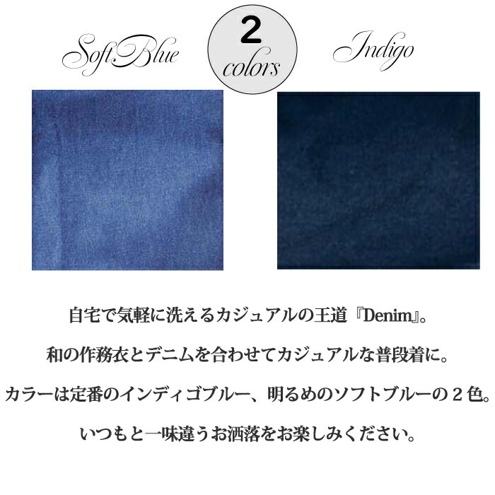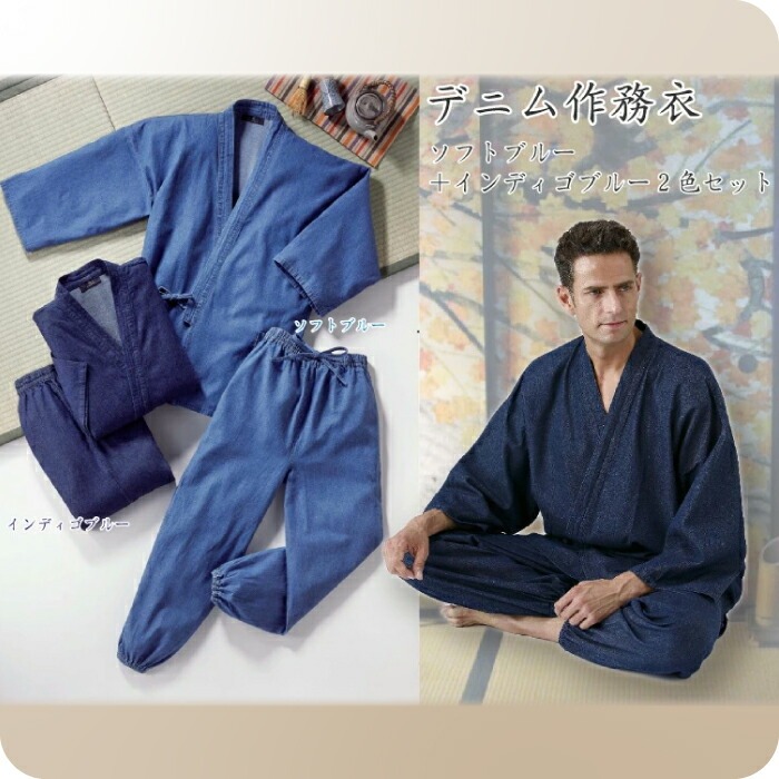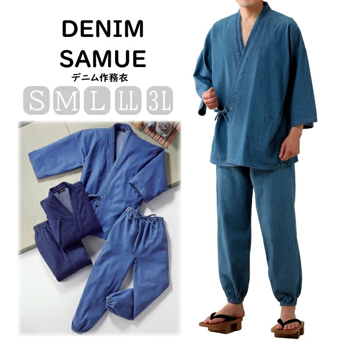 メンズ レディース 作務衣 デニム 上下セット 40096 ソフトブルー インディゴブルー S M L LL 3L 一味違うおしゃれなデニム素材の作務衣、部屋着や作業着に。 老若男女国籍問わず着こなせます。カジュアルに着こなせるデニム生地です。<br> 人気の作務衣スタイルを、カジュアル感覚で気軽に楽しんでいただけるデニム仕立て。 洗うたびに愛着が湧きます。 インディゴブルー・ソフトブルーの2色がございます!! サイズはS/M/L/LL/3Lの5サイズ展開になります。 【品質・素材】 綿 100% 【仕様】 上衣:左腰部に外ポケット 下衣:ウエストひも付き、ゴム仕様、両脇ポケット、裾ゴム仕様 ソフトブルー/Sサイズ 在庫有り ¥5,290(税込) 数量 ソフトブルー/Mサイズ 在庫有り ¥5,290(税込) 数量 ソフトブルー/Lサイズ 在庫有り ¥5,290(税込) 数量 ソフトブルー/LLサイズ 在庫有り ¥5,290(税込) 数量 ソフトブルー/3Lサイズ 在庫有り ¥5,290(税込) 数量 インディゴブルー/Sサイズ 在庫有り ¥5,290(税込) 数量 インディゴブルー/Mサイズ 在庫有り ¥5,290(税込) 数量 インディゴブルー/Lサイズ 在庫有り ¥5,290(税込) 数量 インディゴブルー/LLサイズ 在庫有り ¥5,290(税込) 数量 インディゴブルー/3Lサイズ 在庫有り ¥5,290(税込) 数量