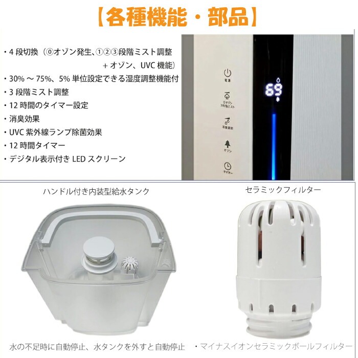 オゾン発生器と加湿器の切り替えができる、UVC紫外線で吸い込んだ空気を除菌!!