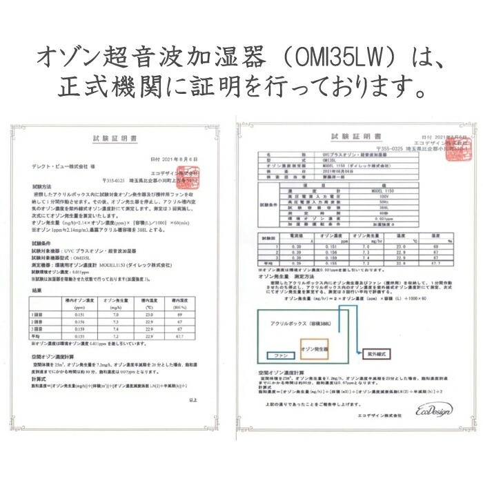 オゾン濃度:吹出口から0.05ppm〜0.1ppm散布